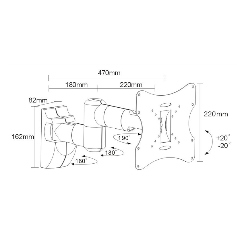 LCD-503A Κατάλληλη για τηλεοράσεις LCD και TFT από 23" ως 42". Μέγιστο βάρος φορτίου 30Kg. Συμβατή με VESA 75x75, 100x100, 200x100, 200x200. Πλήρης ελευθερία οριζόντιας περιστροφής του κάθε βραχίονα (δείτε αναλυτική φωτογραφία). Επιτρέπει επίσης την περιστροφή και στον κάθετο άξονα, με μέγιστη κλίση ±20 μοιρών. Απλή και εύκολη στην εγκατάσταση. Εξαιρετική ποιότητα κατασκευής. Διαθέτει επίσης και σύστημα διαχείρισης καλωδίων εντός του άξονα της βάσης.