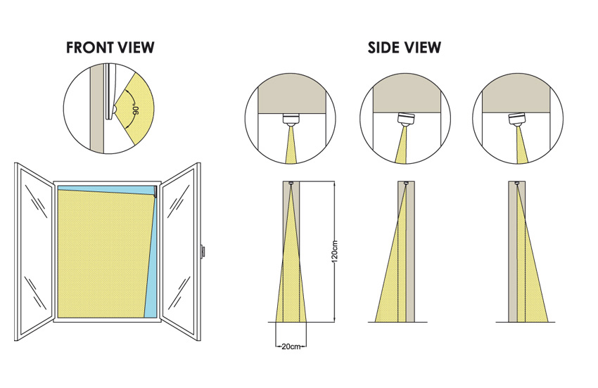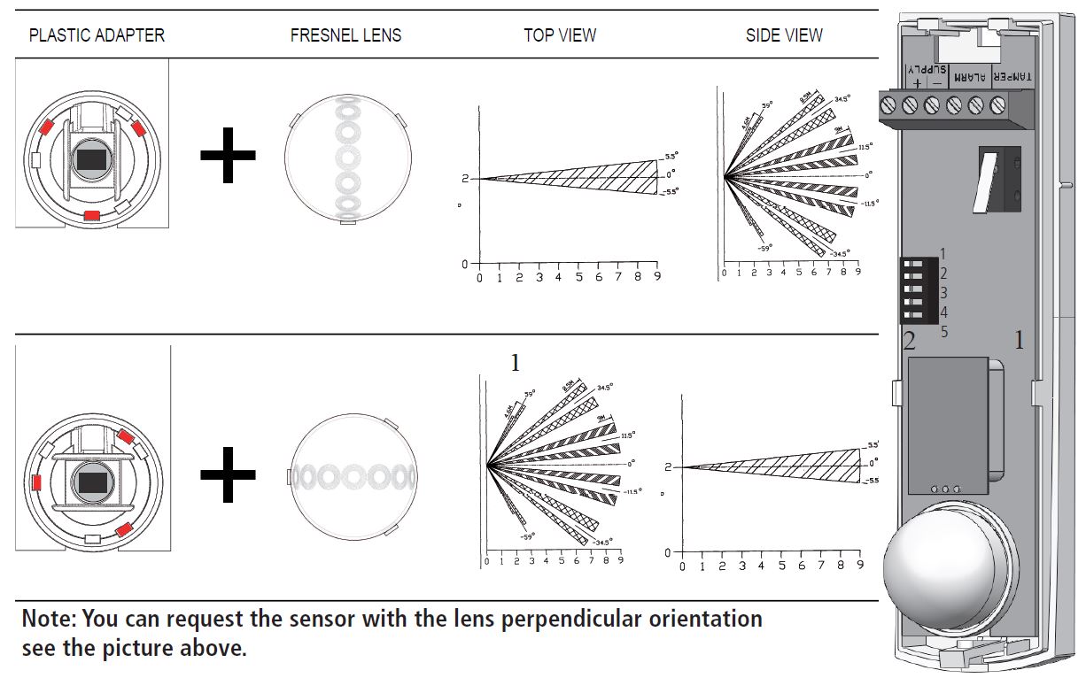 Σας παρέχει δυνατότητα επιλογής (με Dip-Switch) της απόσταση ανίχνευσης ως 2 μέτρα ή ως 3,5 μέτρα. Παρέχει γωνία κάλυψης 90º. Επίσης, αναγνωρίζει την κατεύθυνση ανίχνευσης και μπορεί να λειτουργήσει σε 2 λειτουργίες (επιλέγεται μέσω Dip-Switch):