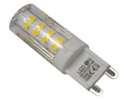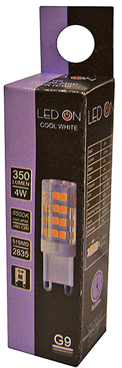 Λάμπα LED με κούμπωμα G9 ισχύος 4 Watt και φωτεινότητα 350Lm. Κατάλληλη για αντικατάσταση των κοινών λαμπτήρων αλογόνου G9. Παράγει ψυχρό φωτισμό 6500ºΚ.