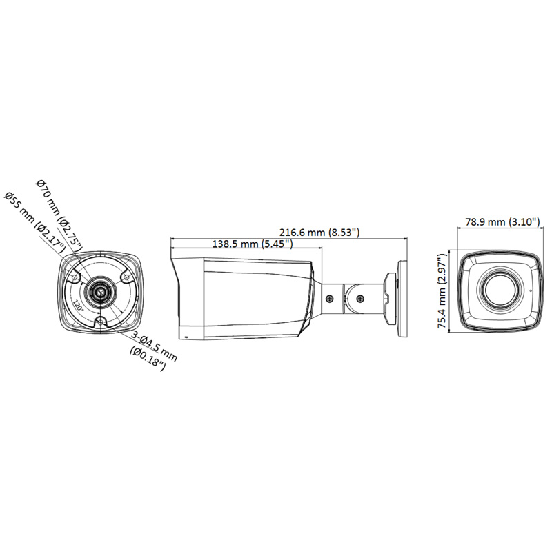 • Dimension: 78.9 mm × 75.4 mm × 216.6 mm