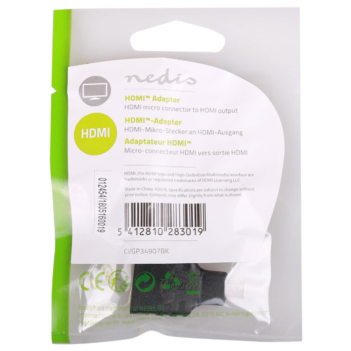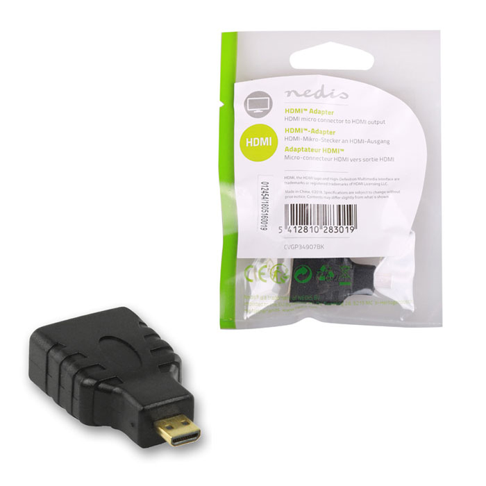 Αντάπτορας micro HDMI αρσενικό σε HDMI θηλυκό της NEDIS, CVGP34907BK.