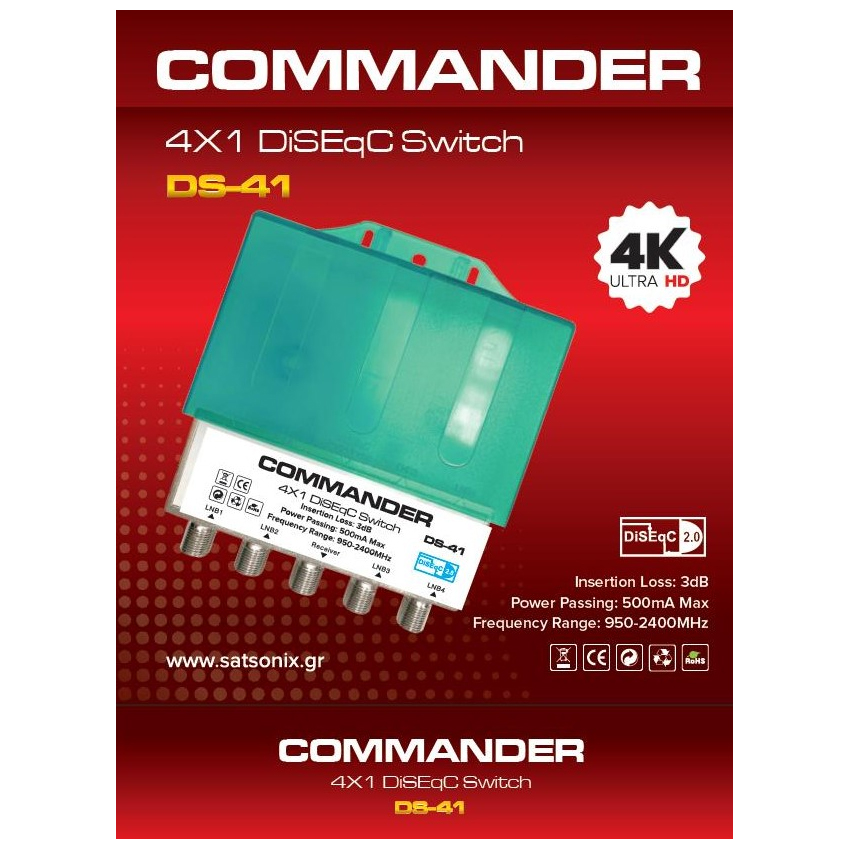 COMMANDER DS-41 DISEqC Switch 2.0 4x1 Στεγανό 4K UHD