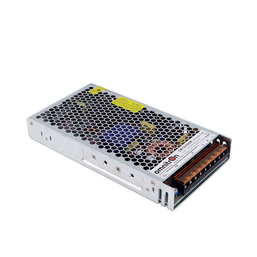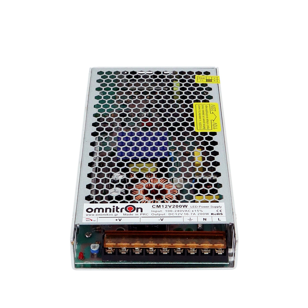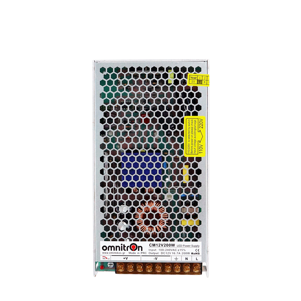 Omnitron CM12V200W Σταθεροποιημένο τροφοδοτικό τύπου switching μονής εξόδου 12VDC 200W 16.7A από την σειρά LRS Miniature Type, με μικρές και Compact διαστάσεις και Voltage Adjustment.