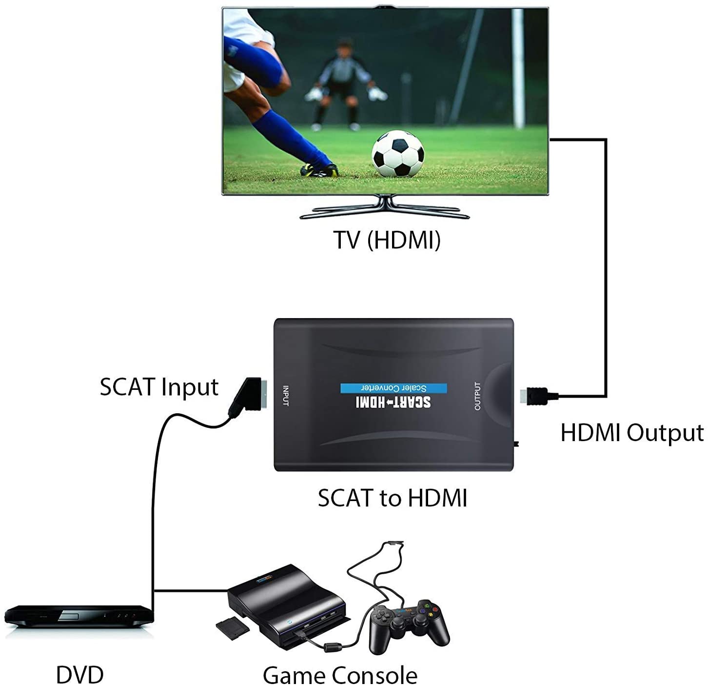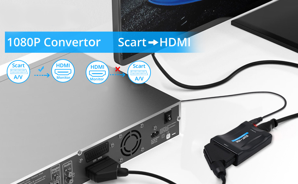 Omnitron PS-A3026A Μετατροπέας σήματος SCART σε HDMI. Με το PS-A3026A μπορείτε να συνδέσετε μία πηγή βίντεο με έξοδο SCART (DVD player, Video Player, κλπ) σε μία συσκευή προβολής με είσοδο HDMI (τηλεόραση, προτζέκτορας, κ.λ.π.). Μπορούμε να μετατρέψουμε λοιπόν ένα αναλογικό σήμα εικόνας και ήχου από έξοδο Scart, σε ψηφιακό σήμα εικόνας και ήχου HDMI, ώστε να το προβάλουμε σε μία σύγχρονη συσκευή εικόνας, όπως μια τηλεόραση, ένα monitor ή ένας projector.