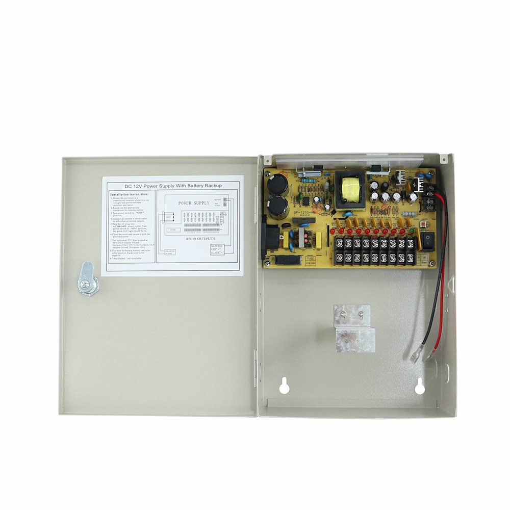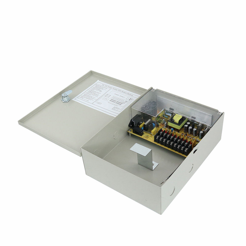 Διαθέτει μεταλλικό κουτί με εξωτερικό κλείδωμα, και switching τροφοδοτικό ισχύος 10A. Διαθέτει 9 ξεχωριστές εξόδους με κλέμες σύνδεσης για την σύνδεση της τροφοδοσίας της κάθε κάμερας Διαθέτει επιπλέον ενδεικτική λυχνία LED για κάθε έξοδο ξεχωριστά, ώστε να έχετε άμεση επίβλεψη σε περίπτωση προβλήματος σε κάποια έξοδο.