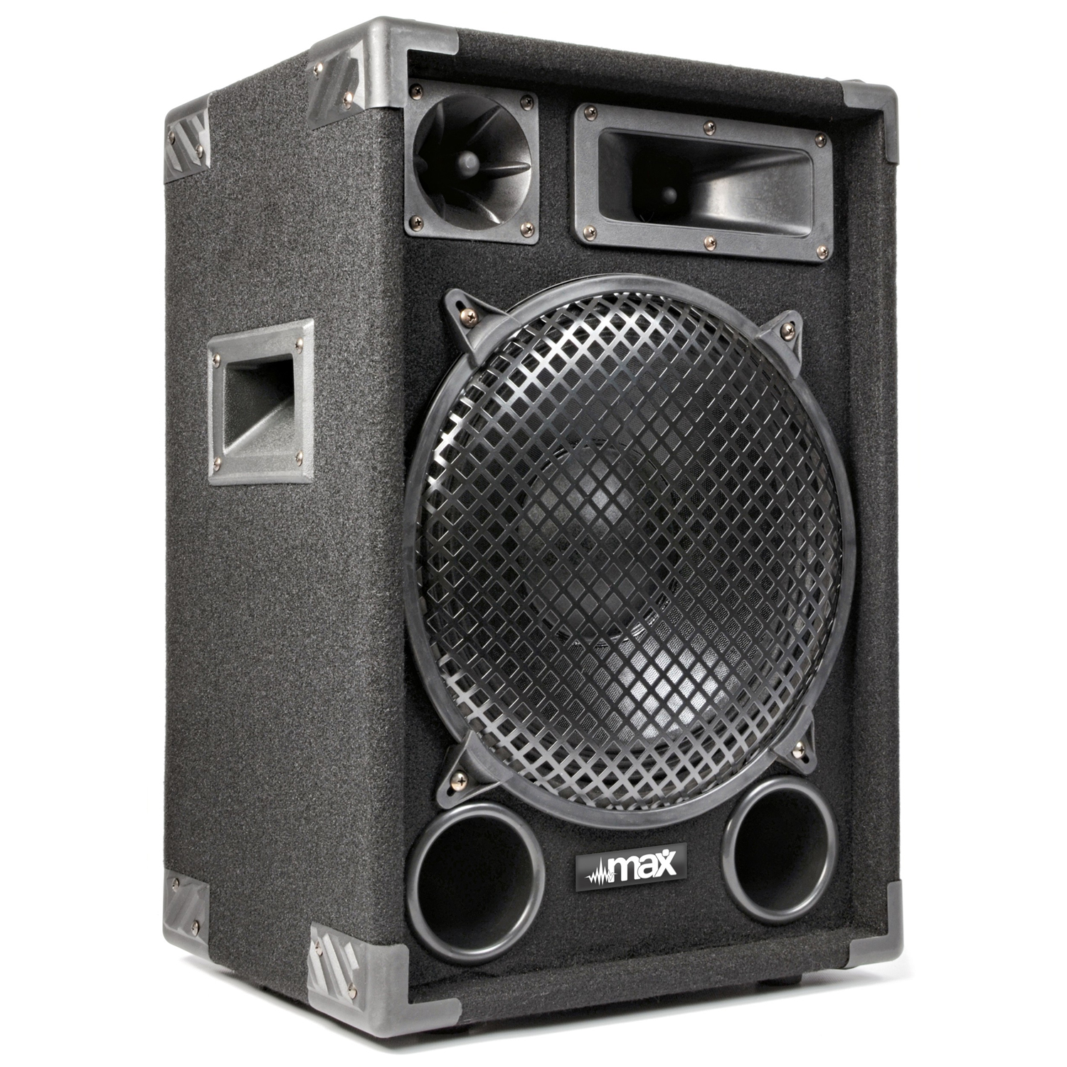 MAX MAX212 Επαγγελματικό ηχείο 3 δρόμων με woofer 2x12" piezo χοάνη για μεσαίες και piezo tweeter για ψηλές. Διαθέτει ξύλινη καμπίνα με τσόχα και 2 bass reflex στη μπροστινή πλευρά. Η ισχύς του ηχείου είναι 700 Watt Max / 350 Watt RMS. Όμορφη καμπίνα με προστατευτική σίτα στα woofers και στις γωνίες του ηχείου. Μπορεί να συνδεθεί είτε απ'ευθείας με το καλώδιο (κλέμα), είτε με Jack 6.3mm. Διαστάσεις 290 x 365 x 850mm. Βάρος 13Kg.