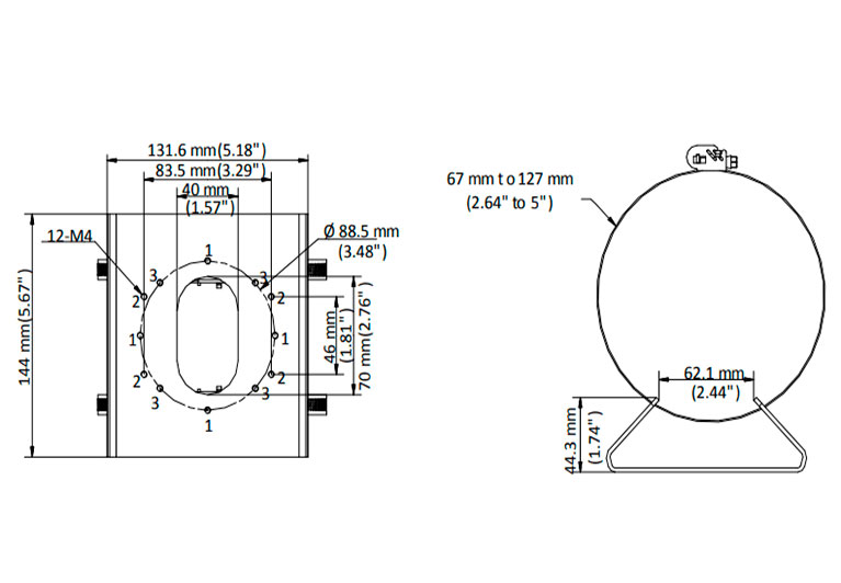 • Εύρος διαμέτρου ιστού: Ø67 ~ Ø127 mm