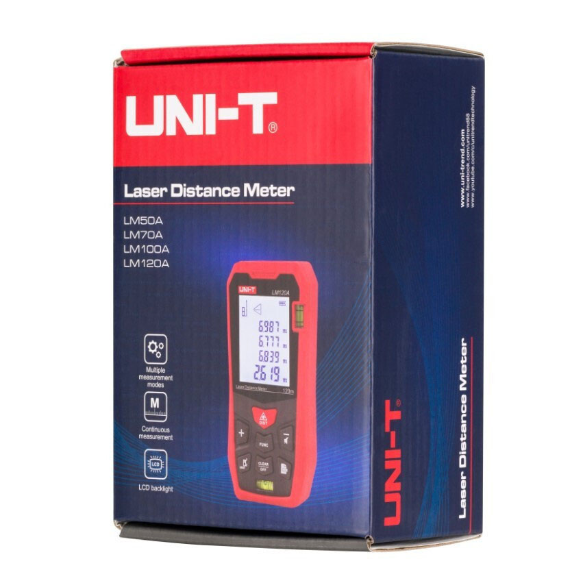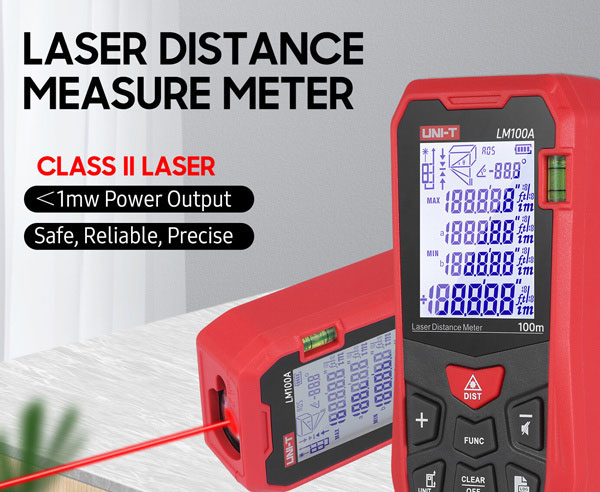 Ψηφιακός Μετρητής απόστασης Laser έως 100 μέτρα της UNI-TREND, LM-100A. Ελαφρύς, μικρός και ακριβής. Δυνατότητα απεικόνισης 3 μετρήσεων για υπολογισμό επιφάνειας και όγκου, υπολογισμός διαγωνίου σε ορθογώνια τρίγωνα, δυνατότητα απομνημόνευσης δεδομένων