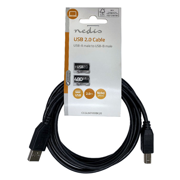 Καλώδιo USB A αρσ. - USB B αρσ. High-Speed, μήκους 2m. Κατάλληλο για τη σύνδεση μιας συσκευής με σύνδεση USB B σε έναν Η/Υ, π.χ. εκτυπωτής, σαρωτής, σκληρός δίσκος.