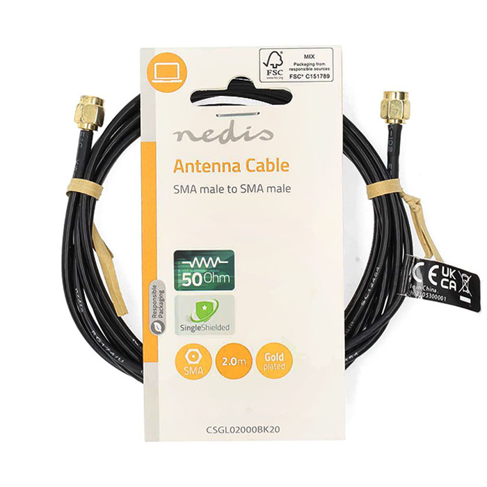 Καλώδιo SMA αρσ. - SMA αρσ. με επίχρυσα βύσματα 2m της NEDIS, CSGL02000BK20. Κατάλληλο για τη σύνδεση δορυφορικών κεραιών στην τηλεόραση ή στον αποκωδικοποιητή σας.