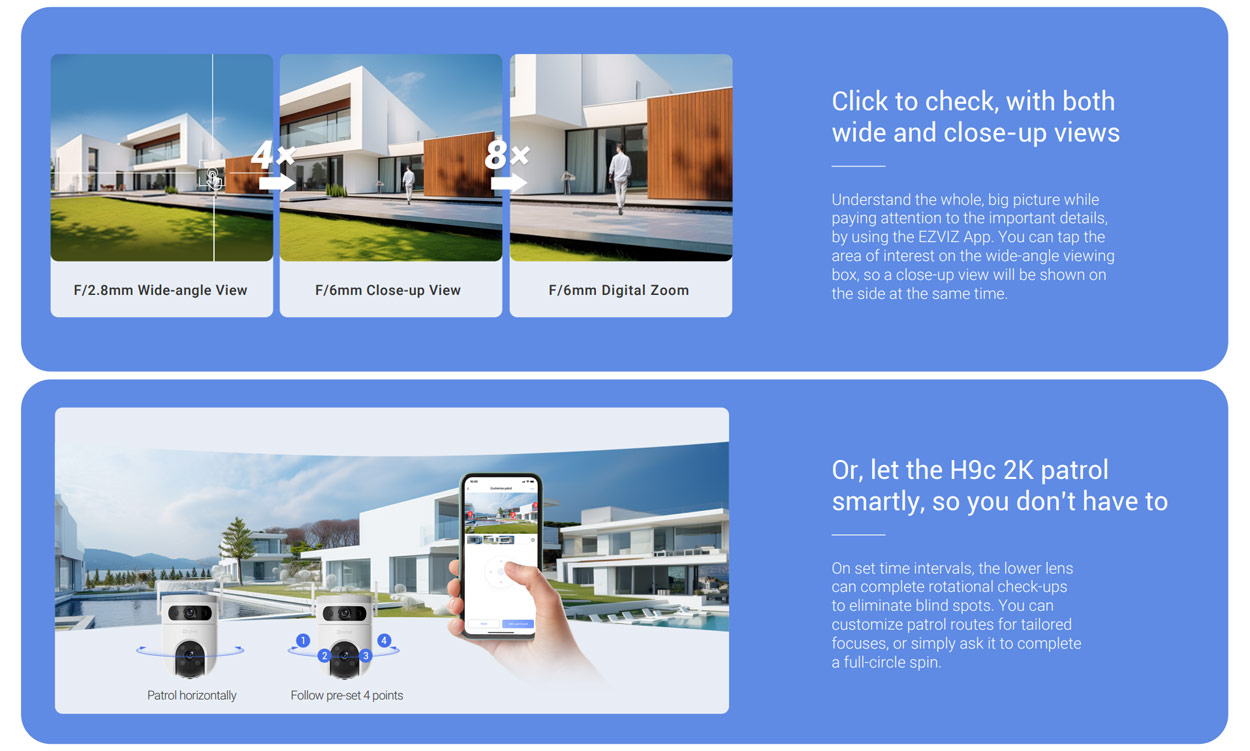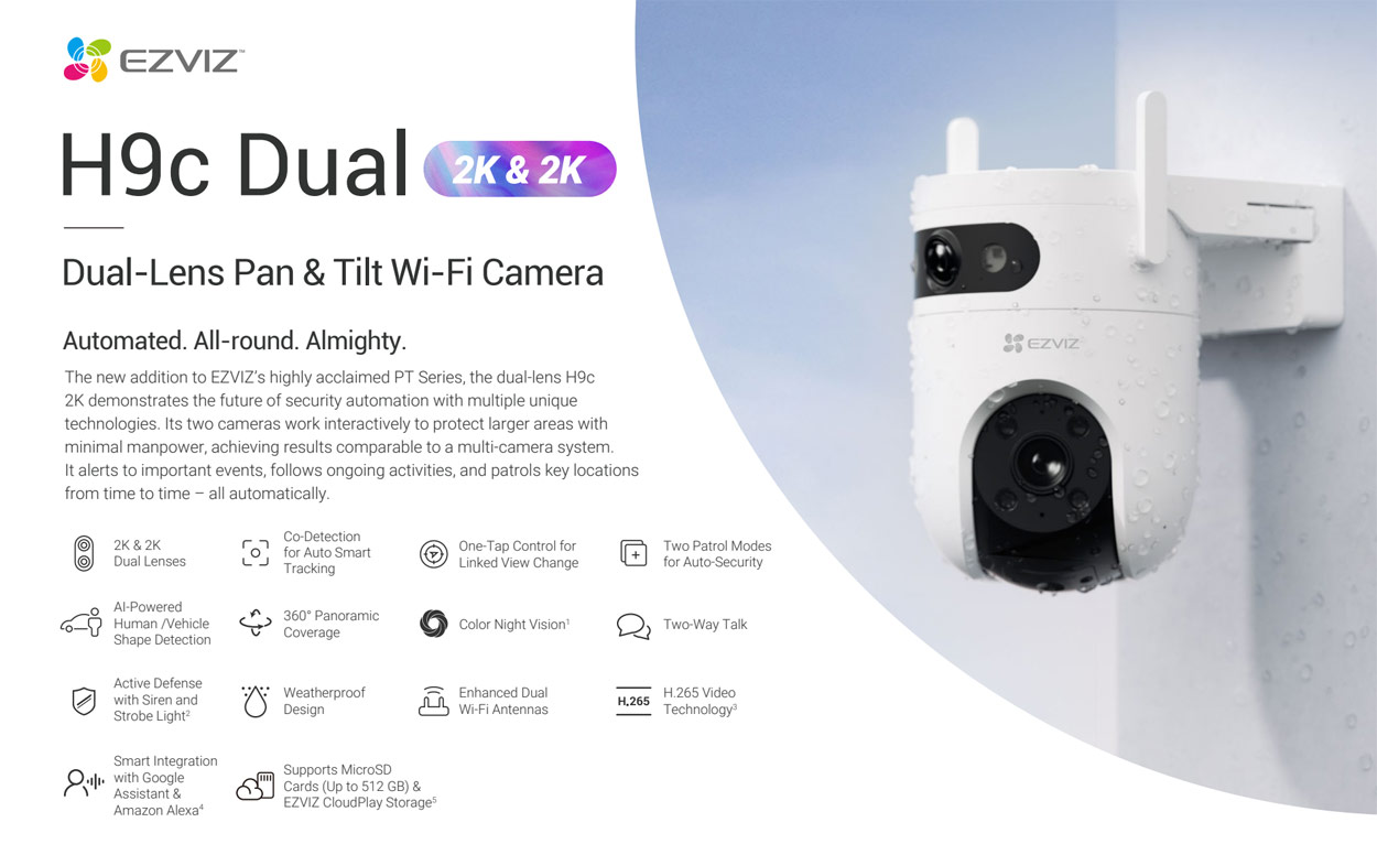 EZVIZ H9c Dual 2K (CS-H9c-R100-8H33WKFL) Διπλή (Dual Lens) Ασύρματη και ενσύρματη δικτυακή κινητή (Pan & Tilt) δικτυακή αδιάβροχη IP κάμερα εξωτερικού χώρου, που περιλαμβάνει στο ίδιο περίβλημα 2 κάμερες: