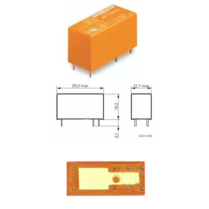 RT334012 SCHRACK Μίνι Ρελέ Πλακέτας 12V DC 1 Επαφής 250V 16A (NO/NC)
