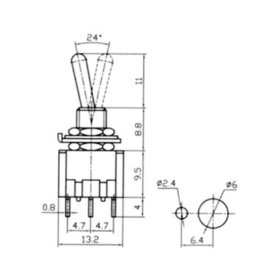 Μικροδιακόπτης Mini Toggle ON-ON με 3 επαφές. Μέγιστο ρεύμα 3Α / 250VAC