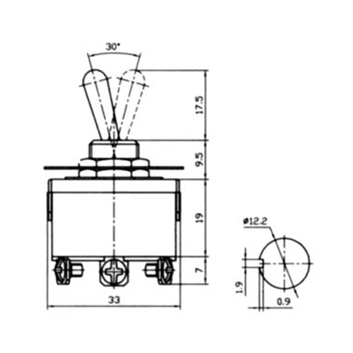 KN3C-203A-A3 Μικροδιακόπτης Διπολικός ON-OFF-ON με 6 επαφές. Μέγιστο ρεύμα 10Α / 250VAC.