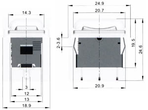 HY17B-2 Διακόπτης Rocker ON-OFF-ON με 3 επαφές. Μέγιστο ρεύμα 10Α / 250V.