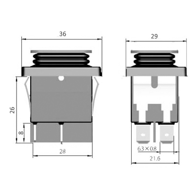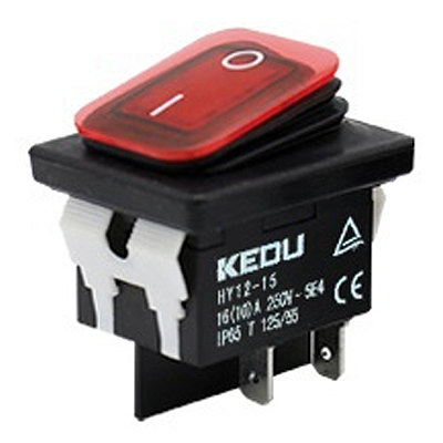 HY12-15 RED Διακόπτης Rocker ON-OFF με λυχνία 220V και 4 επαφές. Μέγιστο ρεύμα 10Α / 250V. Βαθμός στεγανότητας: IP65. Χρώμα: Κόκκινο.