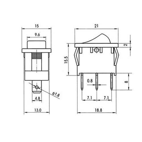 PS8A-13 Mini Διακόπτης Rocker ON-OFF με 4 επαφές 8A / 250V με λυχνία σε Πράσινο. Μέγιστο ρεύμα 8Α / 250V.