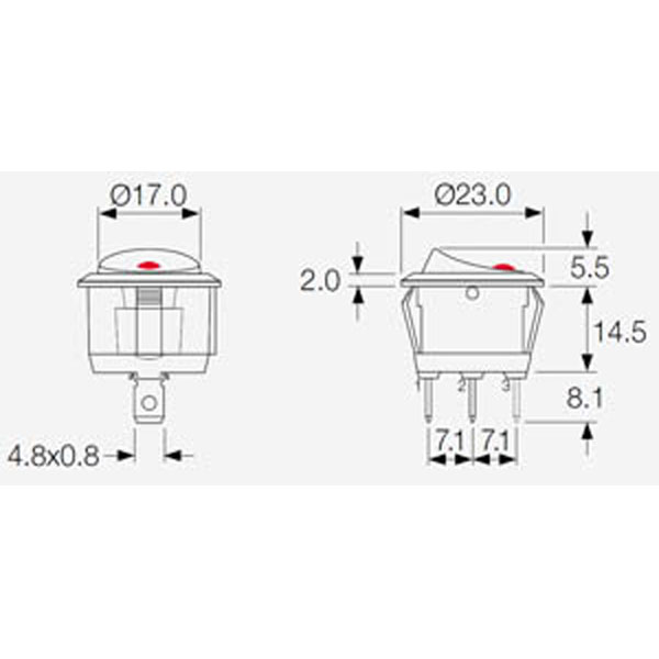 BLK 20A/14V RED LED SCI Διακόπτης Rocker ON-OFF με 3 επαφές και και λυχνία. Μέγιστο ρεύμα 20Α / 14V.