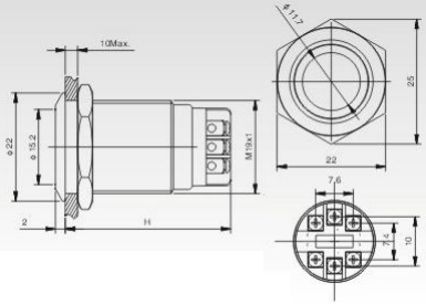Μεταλλικός Διακόπτης ON-OFF 5P στρογγυλό Φ19mm με λυχνία LED 12V Power Κόκκινο OEM HBS1 R. Μέγιστο ρεύμα 5Α / 220V. Βαθμός στεγανότητας IP65. Υλικό κατασκευής: Ανοξείδωτο ατσάλι.