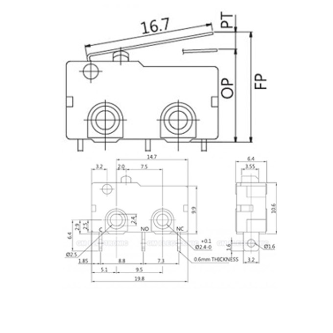 SM-05S-05P-Z Μικροδιακόπτης με Έλασμα και Ροδάκι