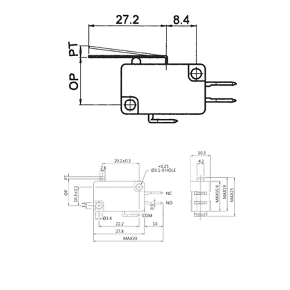 VM-05S-02C0-Z Μικροδιακόπτης με Έλασμα. Μέγιστο ρεύμα 5Α / 250VAC.