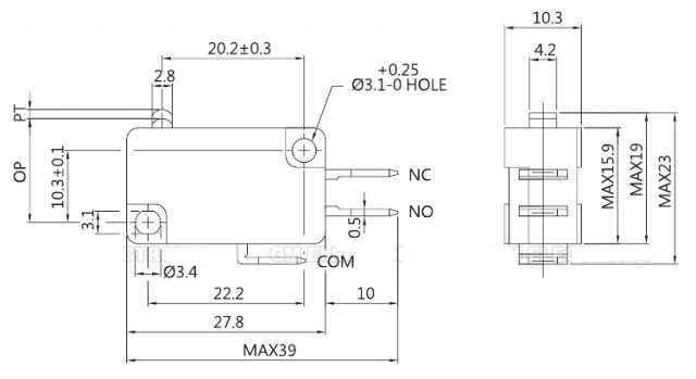 VM-05S-05C0-Z Micro switch Μικροδιακόπτης με Έλασμα και Ροδάκι ZPY