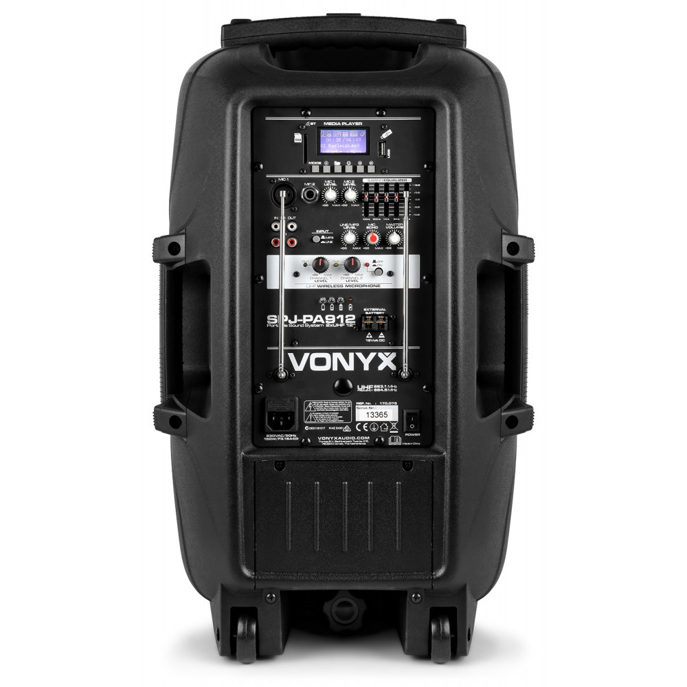 VONYX SPJ-PA912 Φορητό σύστημα 500 Watt Max 12" με USB/SD/Bluetooth και 2xUHF Ασύρμ. Μικρόφ. 170.075