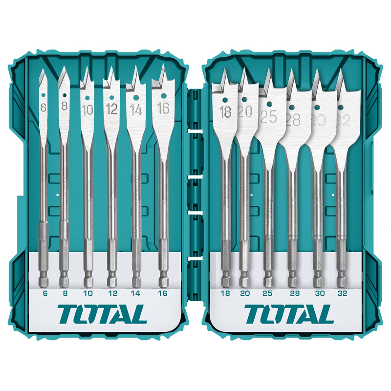 Σετ Τρυπάνια Ξύλου Φτερού 12τμχ. της TOTAL, TACSDL1201. Υποδοχή: 1/4''. Περιλαμβάνονται σε μια ανθεκτική πλαστική θήκη.