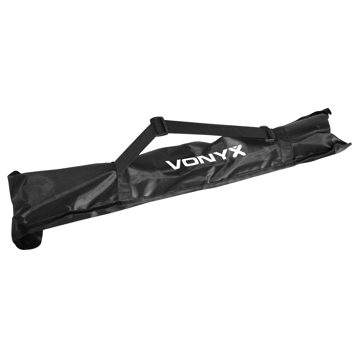 VONYX LS01K 180.550 Ζεύγος βάσεων επαγγελματικών ηχείων με τσάντα μεταφοράς. Σετ με 2 επαγγελματικές βάσεις δαπέδου ηχείων με την αντίστοιχη προστατευτική τσάντα μεταφοράς. Οι βάσεις είναι ρυθμιζόμενες (μέγιστο ύψος 175mm) και αντέχουν μέγιστο φορτίο 30 Kg η κάθε μία. Διαθέτουν σωλήνα διαμέτρου Φ35mm.