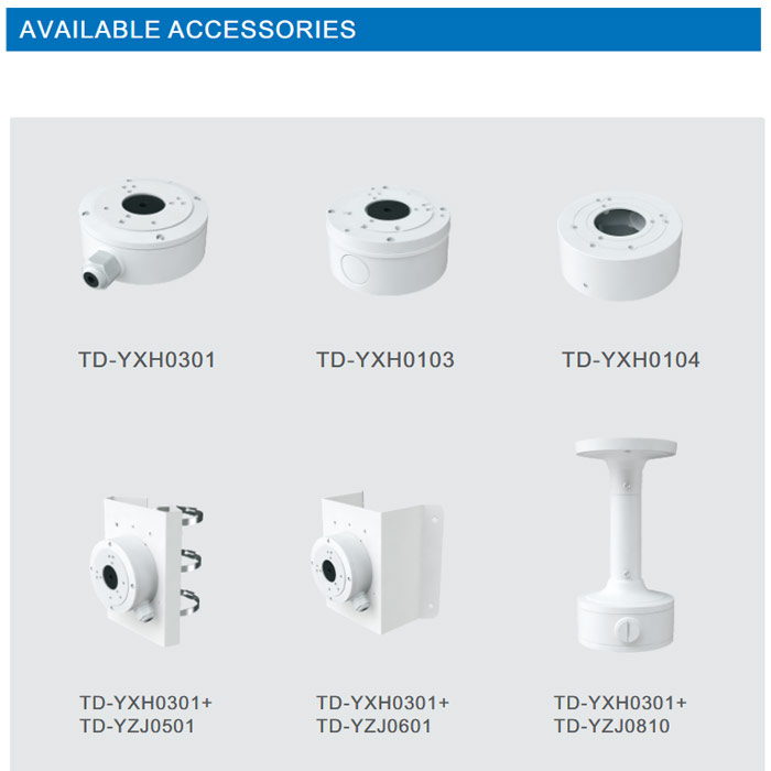 TVT TD-YXH0104 Βάση Στήριξης - Κουτί Διακλάδωσης για κάμερες της TVT. Στερεώνεται σε κάθετο τοίχο ή στην οροφή και πάνω της βιδώνει η κάμερα, ώστε να υπάρχει επαρκής χώρος για την απόκρυψη των καλωδίων και των συνδέσεων της κάμερας της κάμερας εντός της βάσης.