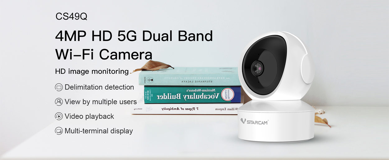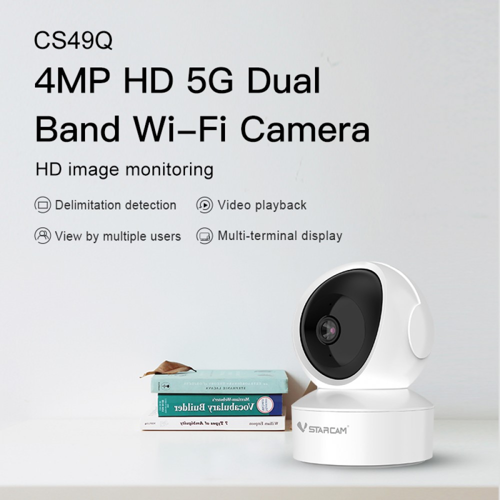 Vstarcam CS49Q Ρομποτική Περιστρεφόμενη Ασύρματη IP κάμερα εσωτερικού χώρου, σε λευκό χρώμα, με αισθητήρα εικόνας υψηλής ανάλυσης Super HD 4MPixels. Είναι κατάλληλη για εσωτερικούς χώρους, υποστηρίζει δυνατότητα Ασύρματης σύνδεσης μέσω Wi-Fi, και μάλιστα υποστηρίζει Dual Band Wi-Fi 2.4GHz και 5GHz για ακόμη μεγαλύτερη σταθερότητα και εύκολη ασύρματη δικτύωση σε όλα τα Routers. Φυσικά, σας παρέχει και την δυνατότητα ενσύρματης σύνδεσης, μέσω της θύρας Ethernet που διαθέτει στην πίσω πλευρά της κάμερας.