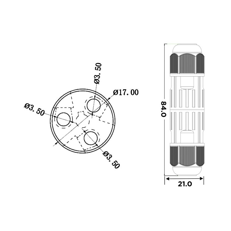 M16A BLK Αδιάβροχος Σύνδεσμος Καλωδίων 3P 2.5mm² Τροφοδοσίας IP68 με Βιδωτή Κλέμμα και Λάστιχο Διεύλεσης