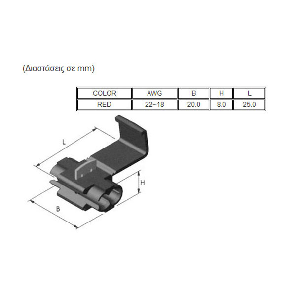 Κλέφτης Καλωδίων 22~16AWG Κόκκινο SP1. Κατασκευασμένος από BRASS, κασσίτερο και PP/NYLON.