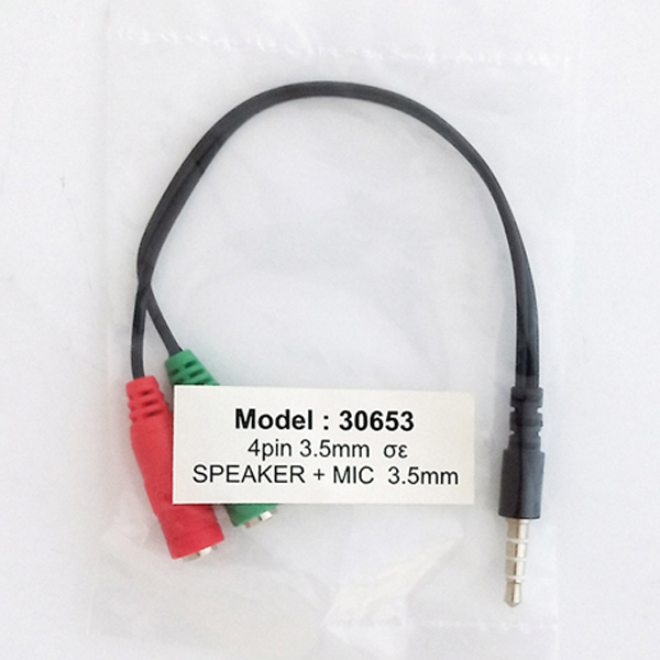 30653 Adaptor 1x αρσενικό 4-pin 3.5mm σε 2x θηλυκά Stereo 3.5mm - για σύνδεση headset σε PC. Σύνδεση headset με 2 βύσματα 3.5mm (μικρόφωνο + ακουστικά) σε PC ή Notebook το οποίο δέχεται ένα βύσμα 3.5mm 4-pin.