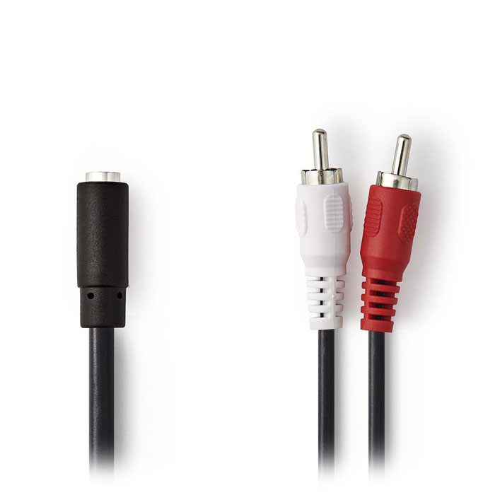 Καλώδιο ήχου Jack 3.5mm αρσ. stereo - 2x RCA αρσ. 0.2m της NEDIS, CAGB22255BK02. Κατάλληλο για τη σύνδεση μιας συσκευής με έξοδο 3,5mm, π.χ. ένα MP3 ή κινητό, σε ένα ηχοσύστημα ή ενισχυτή.
