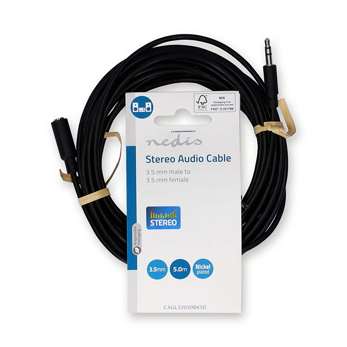 Καλώδιο προέκτασης ήχου 3,5mm Stereo αρσ. - 3,5mm Stereo θηλ., 5.00m. Κατάλληλο για την προέκταση μιας σύνδεσης 3,5mm.
