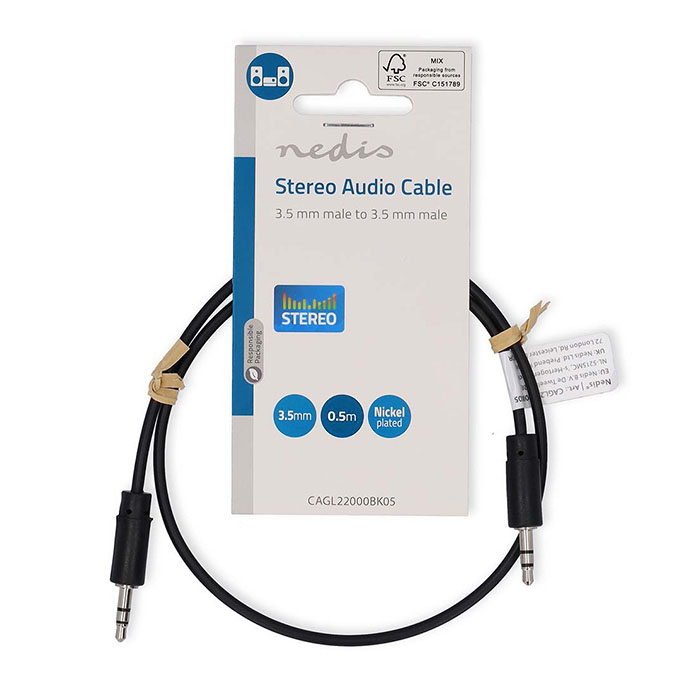 Καλώδιο ήχου 3.5mm αρσ. Stereo - 3.5mm αρσ. Stereo 0.5m της NEDIS, CAGL22000BK05.