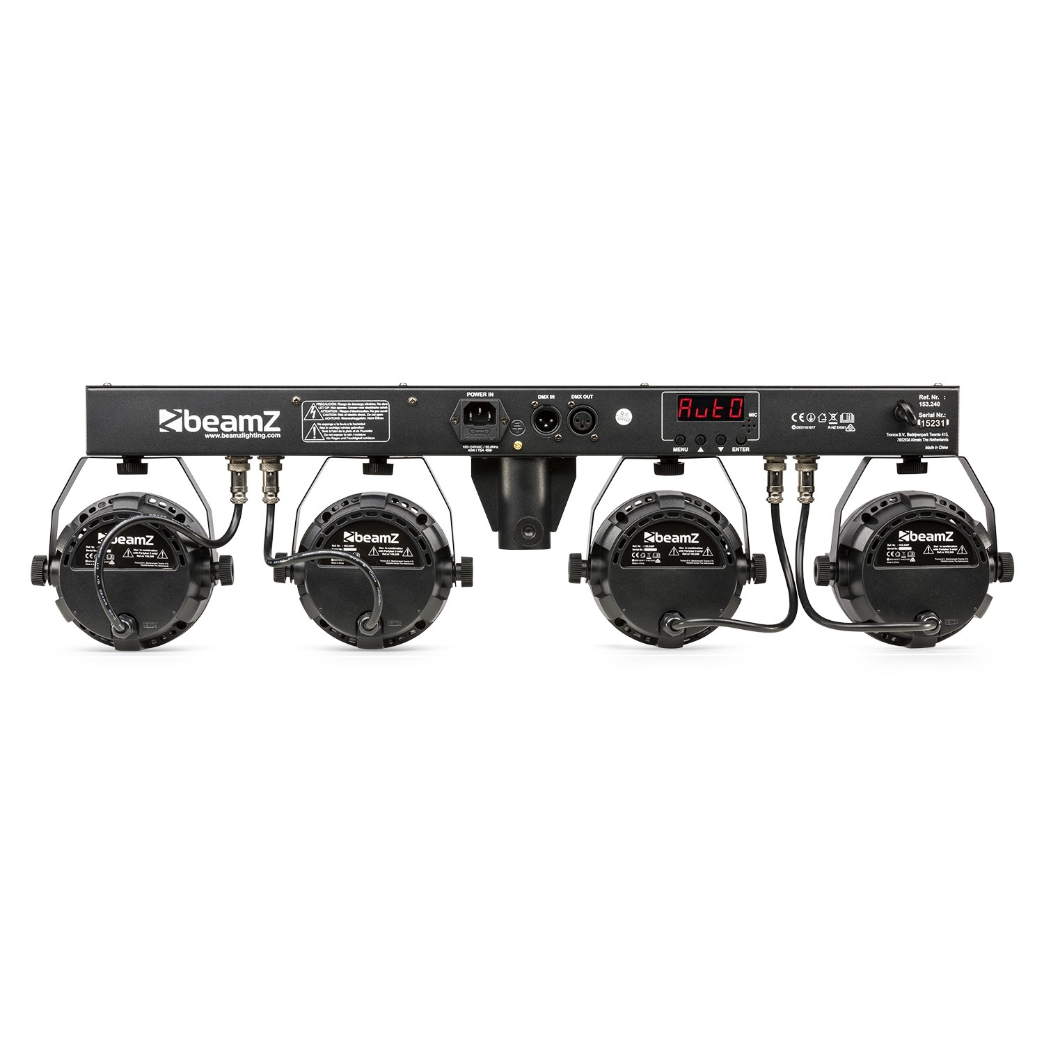 • 4 PAR cans with 3x 1W Red, 3x 1W Green and 3x 1W Blue LEDs