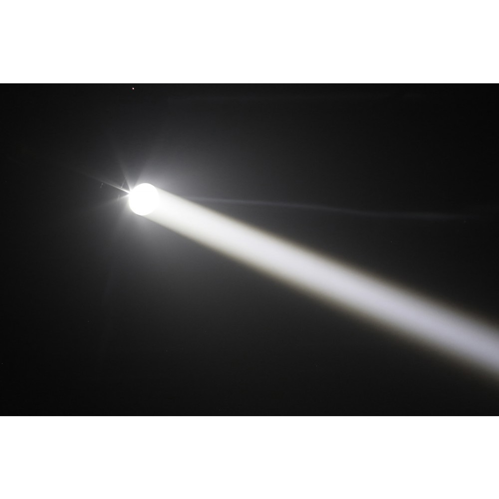 Νέα compact μικρή κεφαλή με πολύ ισχυρή απόδοση με ρυθμιζόμενη λειτουργία strobe και dimmer 0 -100%. Μπορεί να χρησιμοποιηθεί είτε με DMX κονσόλα, είτε αυτόνομα, είτε με το ρυθμό της μουσικής. Όταν λειτουργεί σε DMX mode έχετε πλήρη έλεγχο με 4 ή 13 κανάλια. Επιπλέον μπορείτε να την τηλεχειριστείτε μέσω του IR τηλεχειριστηρίου της.