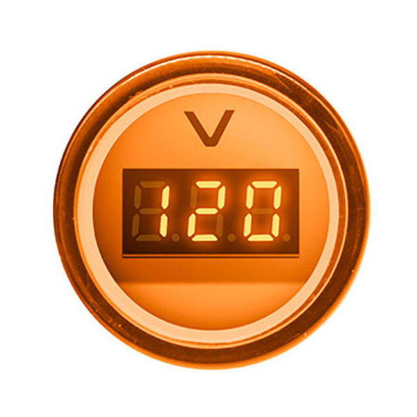 Ψηφιακό βολτόμετρο 20 - 500V AC Φ22mm σε Πορτοκαλί AD101-22VM ORANGE. Διαστάσεις: 50x22mm. Σύνδεση καλωδίου με βίδα. Με LED οθόνη 3 ψηφίων και ένδειξη της τάσης (Volt).