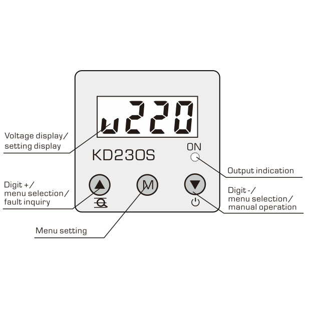 - Λειτουργίες μέτρησης: Υπόταση (160-210VAC) ρυθμιζόμενη - Υπέρταση (220-280VAC) ρυθμιζόμενη