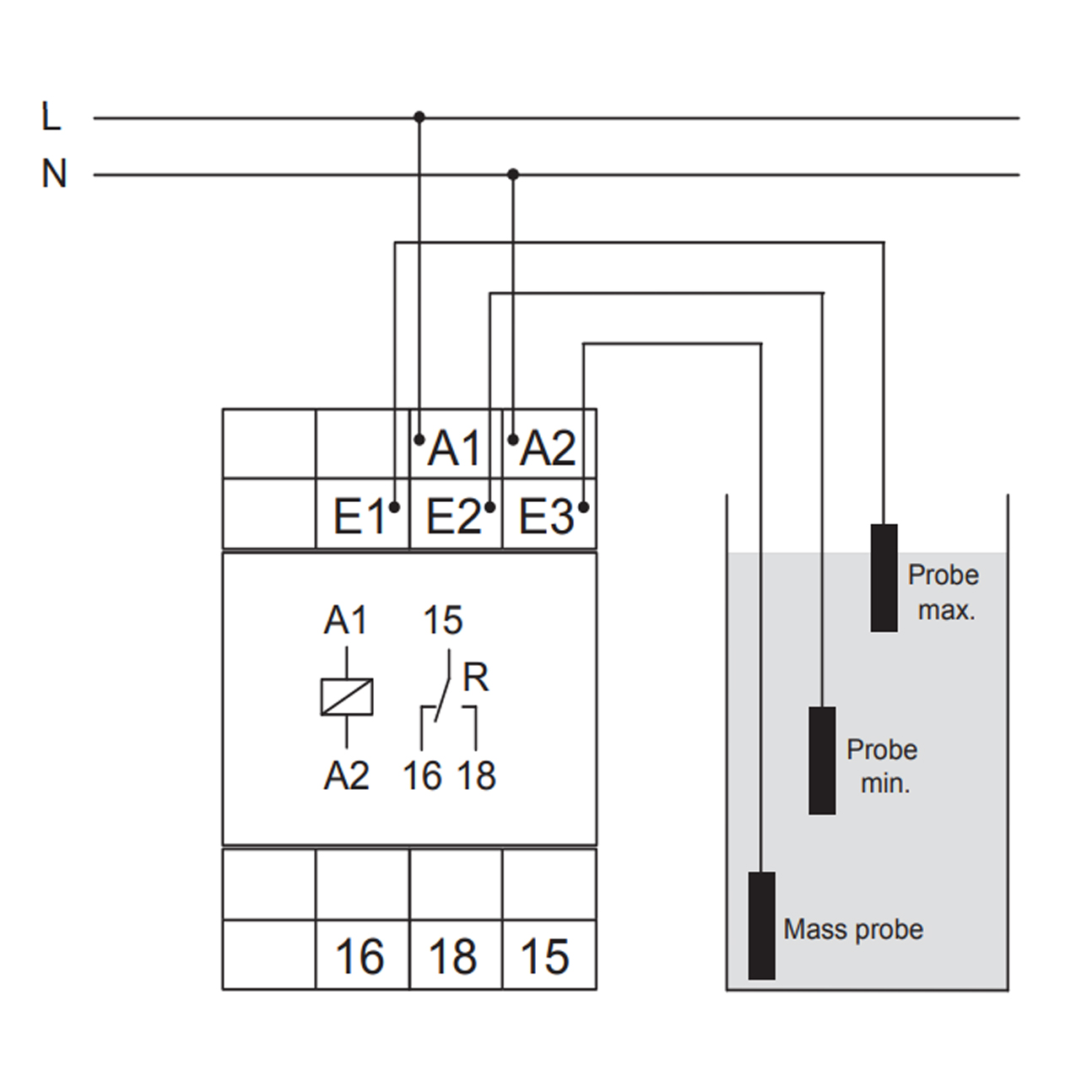 Relay Επιτήρησης Στάθμης Αγώγιμων Υγρών 230 VAC 35mm της TELE HAASE, E3LM10. Χρησιμοποιείται για έλεγχο στάθμης σε φρεάτια ή δεξαμενές αποθήκευσης.