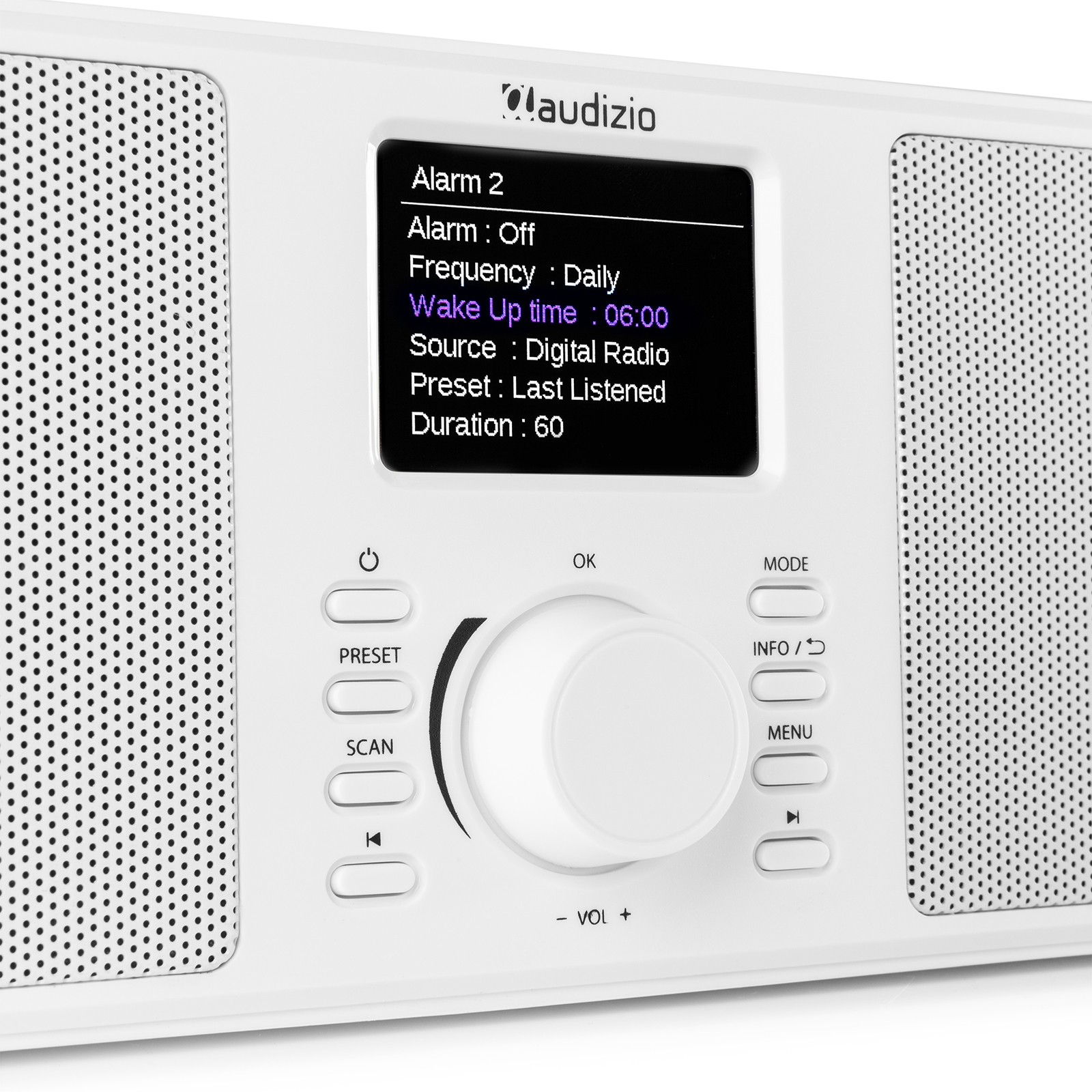 AUDIZIO MONZA WHITE Stereo Ραδιόφωνο DAB+, FM, Bluetooth και Dual Alarm, Sleep Timer (102.422)