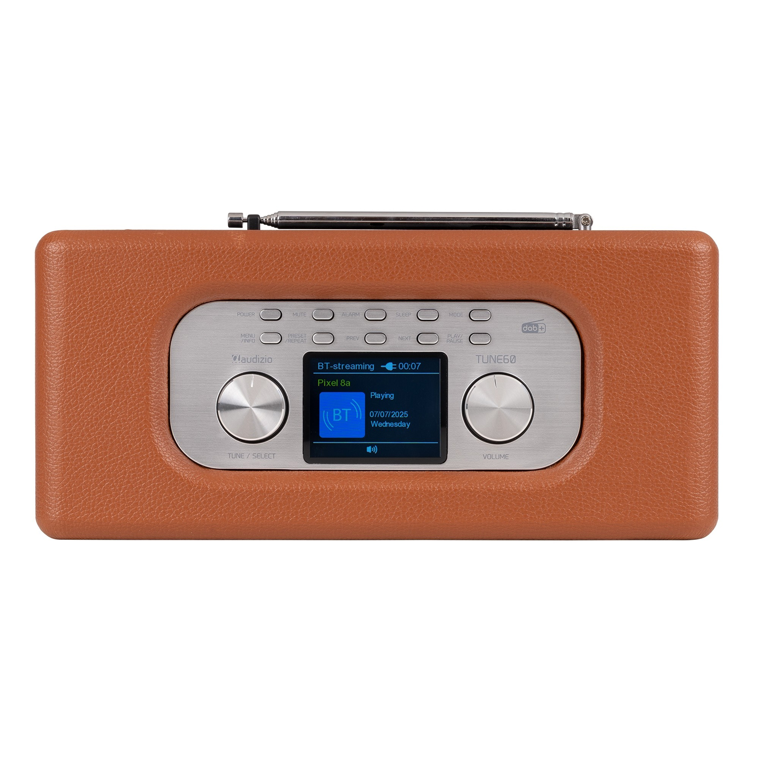 Το Tune60 διαθέτει DAB, DAB+ και παραδοσιακό FM. Το πρότυπο DAB+ είναι το μέλλον στο ραδιόφωνο καθώς οι σταθμοί ακούγονται πεντακάθαρα, χωρίς παρεμβολές, αλλά και σε μεγαλύτερη εμβέλεια. Μπορείτε να αποθηκεύσετε συνολικά 20 αγαπημένους ραδιοφωνικούς σταθμούς (10 για DAB+ και 10 για FM) για άμεση πρόσβαση. Με αυτόν τον τρόπο, μπορείτε να απολαύσετε τόσο μοντέρνο όσο και νοσταλγικό ραδιόφωνο. Το δερμάτινο φινίρισμα, καθιστά το Tune60 της Audizio πραγματικά εντυπωσιακό. Τέλος, μπορείτε εύκολα να το ελέγχετε και από απόσταση με το παρεχόμενο τηλεχειριστήριο.