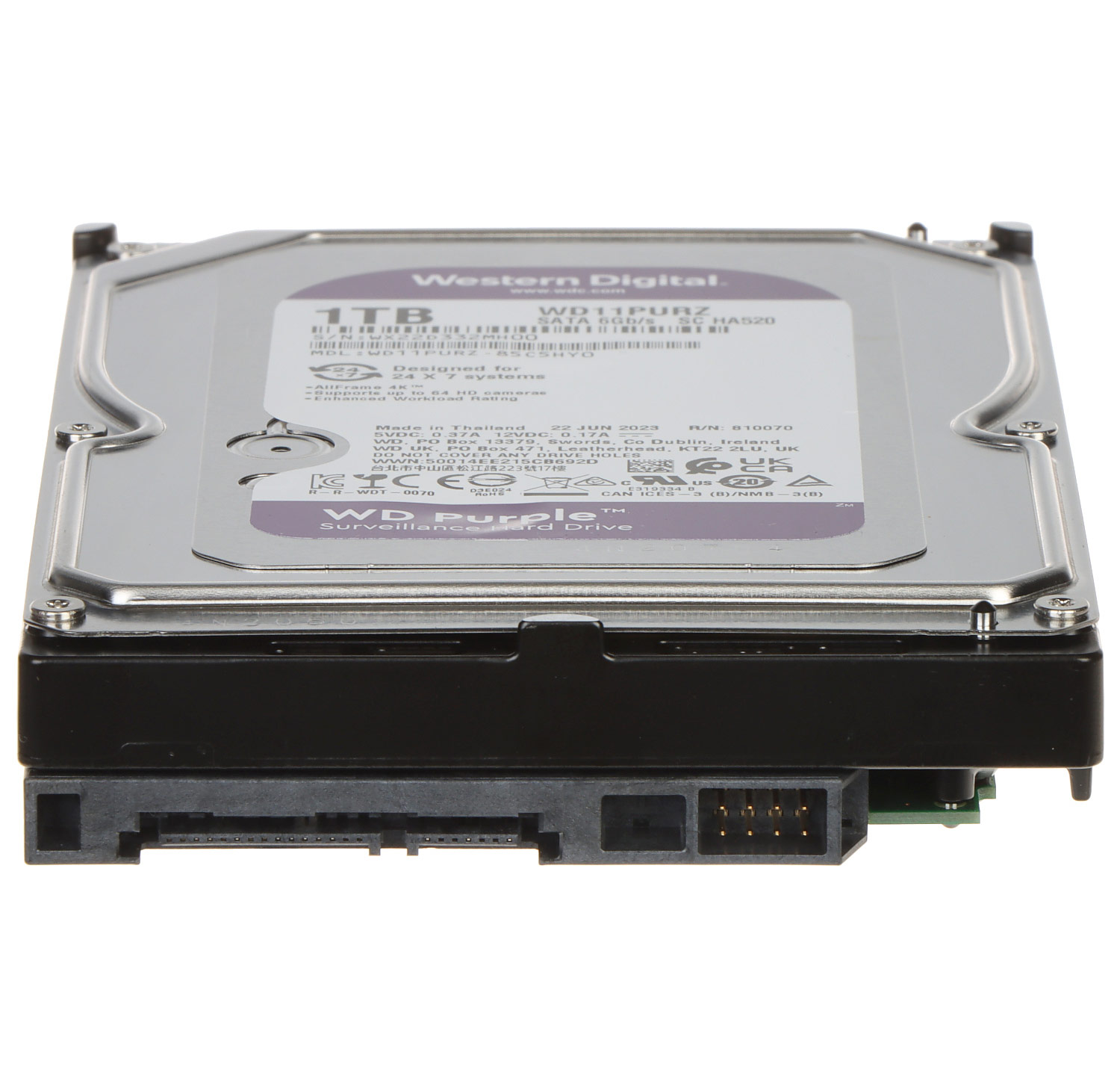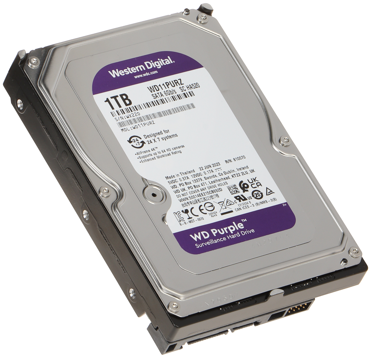 Η νέα σειρά δίσκων WD Purple για συστήματα παρακολούθησης προσφέρει χωρητικότητα από 1TB έως και 10 ΤΒ και είναι διαθέσιμη σε διεπαφή SATA III. Είναι κατασκευασμένη για 24ωρη παρακολούθηση 7 μέρες την εβδομάδα, σε συστήματα ασφαλείας υψηλής ευκρίνειας. Με υποστηριζόμενο φόρτο εργασίας έως και 180 TB/έτος και παρέχοντας υποστήριξη για έως και 64 κάμερες, οι μονάδες WD Purple έχουν βελτιστοποιηθεί για συστήματα επιτήρησης.