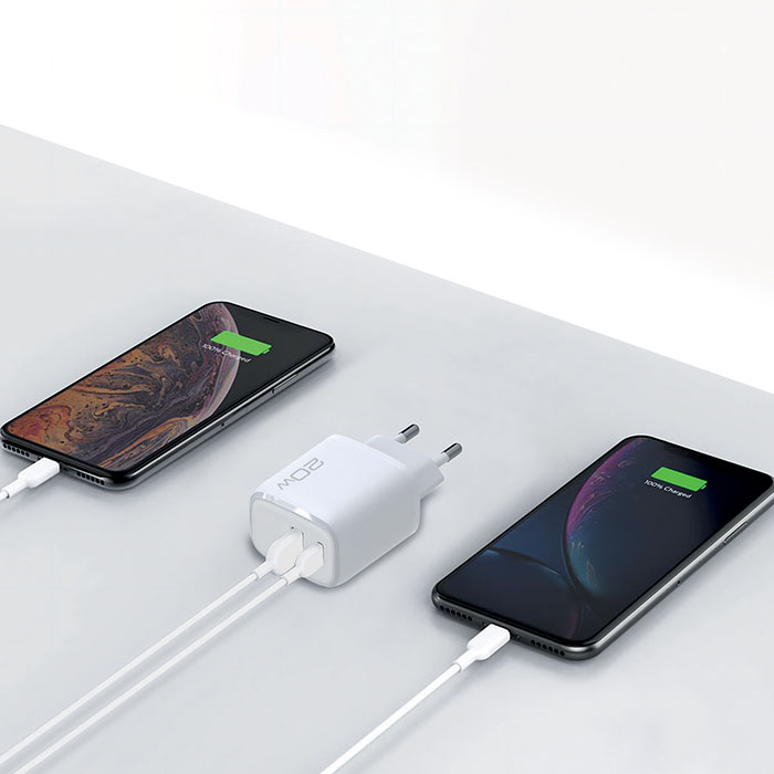 Universal οικιακός φορτιστής USB-A QC3.0 & USB-C PD3.0 20W, σε λευκό χρώμα.
