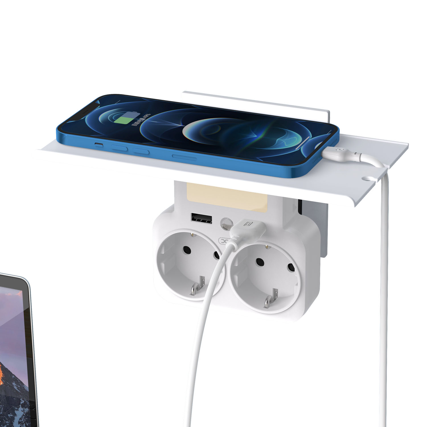 Πολύπριζο της XO, 2 θέσεων Schuko + 2 θύρες USB φόρτισης με φωτάκι νυκτός LED και βάση τοποθέτησης κινητού Δυνατότητα σύνδεσης έως και 2 συσκευές ταυτόχρονα, με φωτάκι LED για ευκολία στην χρήση σε περιπτώσεις χαμηλού φωτισμού,πρακτική βάση στήριξης κινητού, ασφάλεια υπέρτασης, προστασία υπέρβασης τάσης και προστασία από βραχυκύκλωμα. Το μέγιστο ρεύμα εξόδου της θύρας USB-A είναι 2.4A η τάση εξόδου USB-A είναι 5 VDC.