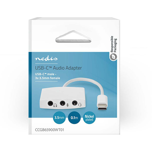 Αντάπτορας USB high speed type-C αρσ. - 3x 3.5mm female. 0.10m της NEDIS, CCGB65900WT01 σε λευκό χρώμα.