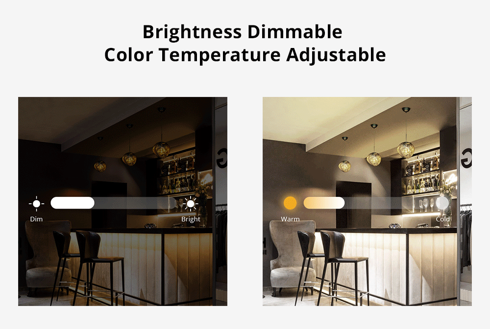 Σας παρέχει επίσης να ρυθμίσετε ελεύθερα την θερμοκρασίας χρώματος (θερμό/ψυχρό), με ένα εύρος από 2200K ως 6500K, απευθείας μέσω της εφαρμογής eWeLink