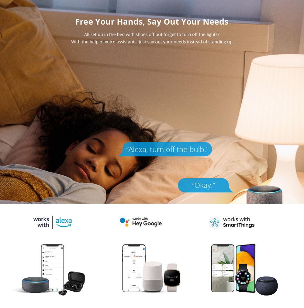 Η έξυπνη λυχνία LED της Sonoff είναι απόλυτα συμβατή με Amazon Alexa και Google Assistant, ώστε να μπορείτε να δώσετε μια φωνητική εντολή για να ενεργοποιήσετε/απενεργοποιήσετε το φως σας ή να χαμηλώσετε/φωτίσετε και ακόμη και να ανάψετε το φως σας στη θερμοκρασία χρώματος που θέλετε.